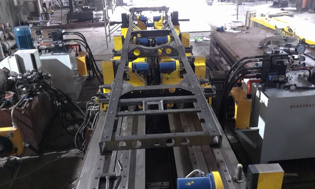 中輕卡車架總成拼裝夾具(調(diào)試現(xiàn)場)